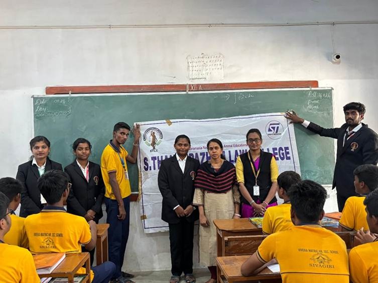 On 13, September 2025 Legal Awareness Camp conducted by STLC students at Viveka matriculation and Higher secondary School “Legal Awareness on the topic of child rights , juvenile justice and consumer protection. The students actively participated in the session and interacted with students, and sorted the doubts.